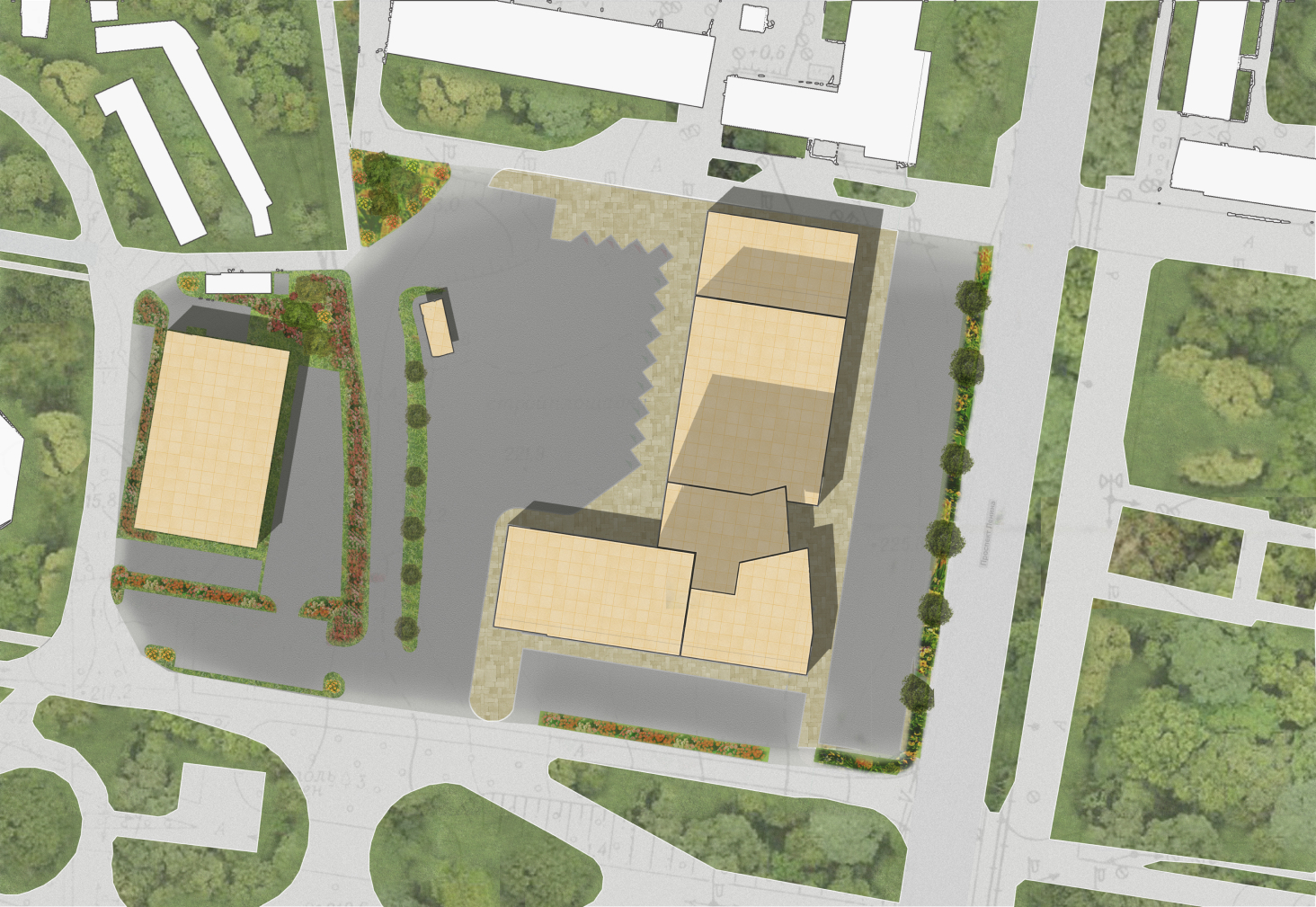 и торговым центром со стороны проспекта Ленина