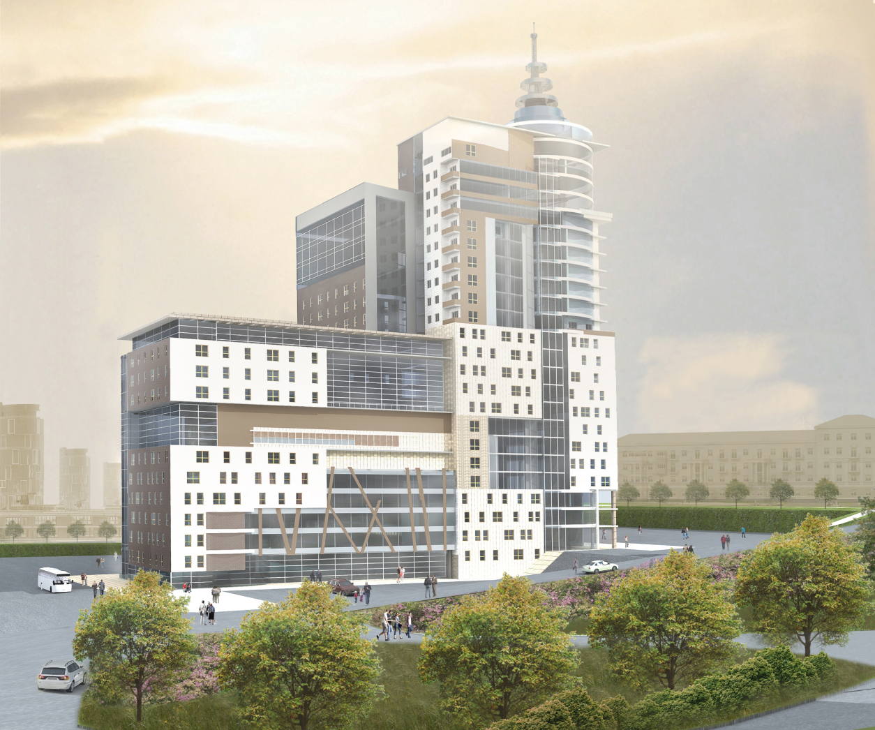 с гостиницей и торговым центром