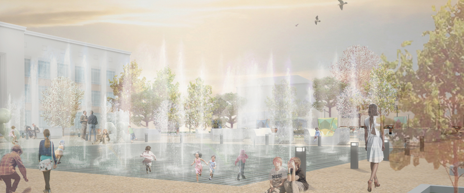 View from above of the landscaped area in front of the cultural and entertainment complex