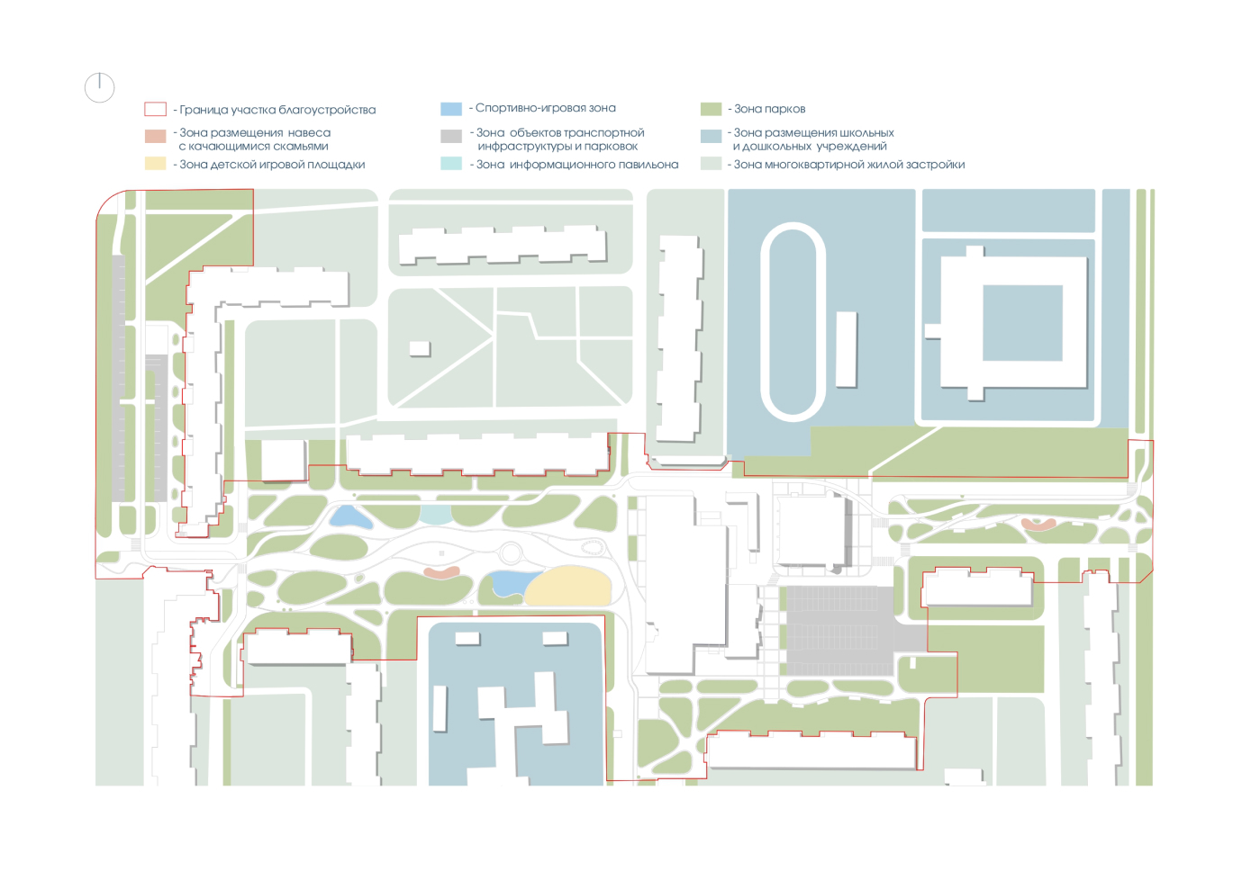 In the immediate vicinity of the space of improvement there are schools, a swimming pool, and residential buildings. Young residents of the district live, study and spend time in them - its future. A good future is not possible without memory and knowledge of the past. The architectural concept proposes to revive good traditions and a powerful atmosphere of the "energy of the first" in the area.