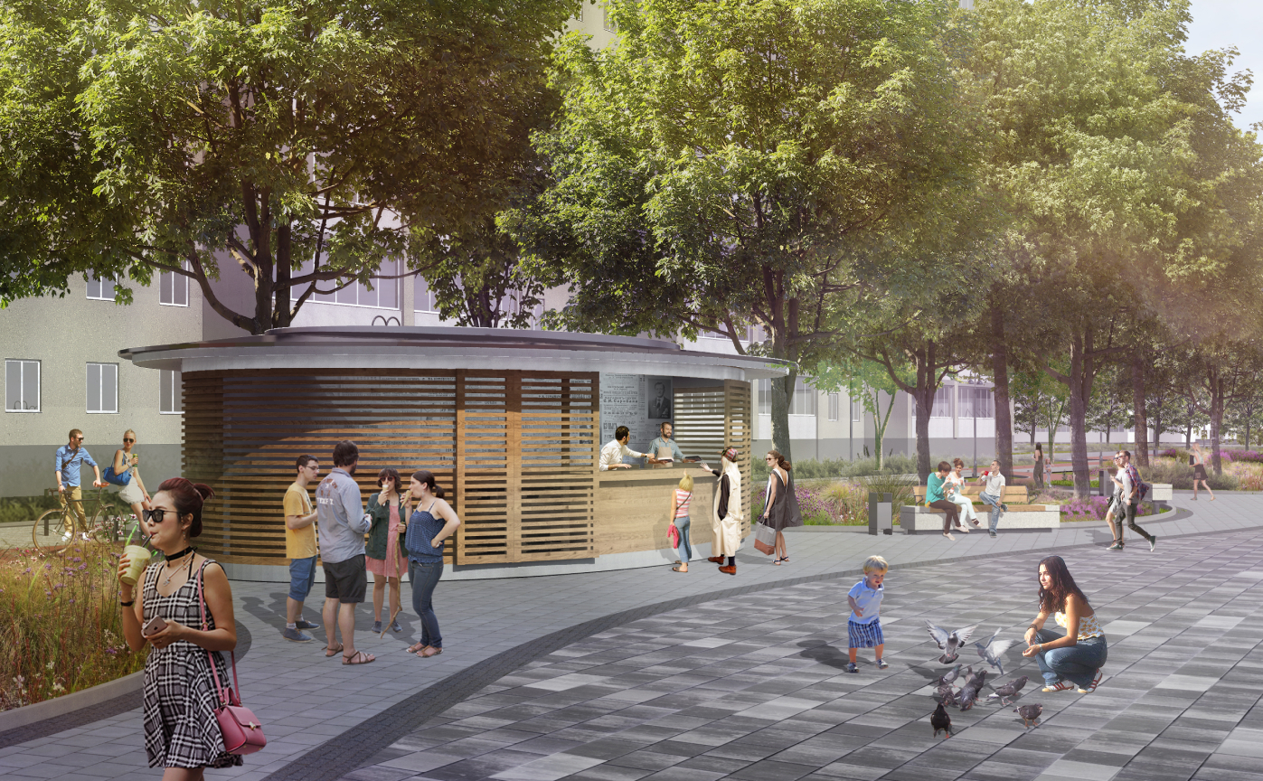 The architectural concept proposes to reveal the history of the place of the improvement. Using spatial and visual means, it talks about the "time of the first" - the events and people who laid the foundation for today's life in the area.