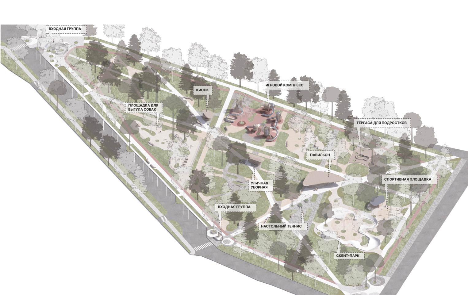 The area of the improvement is located in the heart of Dedovsk and is significant for its inhabitants. It is his “visiting card”, the focus of the historical, cultural, and universal values of Dedovsk residents. The concept of improvement is aimed at caring for people and their needs. The project proposes the "domestication" of the city center by rethinking the area of improvement, creating a system of multi-scale functional spaces on it, integrated into the "urban fabric" of Dedovsk and united into a single structure.