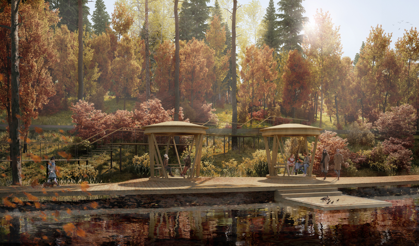 Architectural and planning concept for the improvement of a public area at the address: Moscow region, Krasnogorsk city district, Krasnogorsk city, area near the rivers Banka and Sinichka.