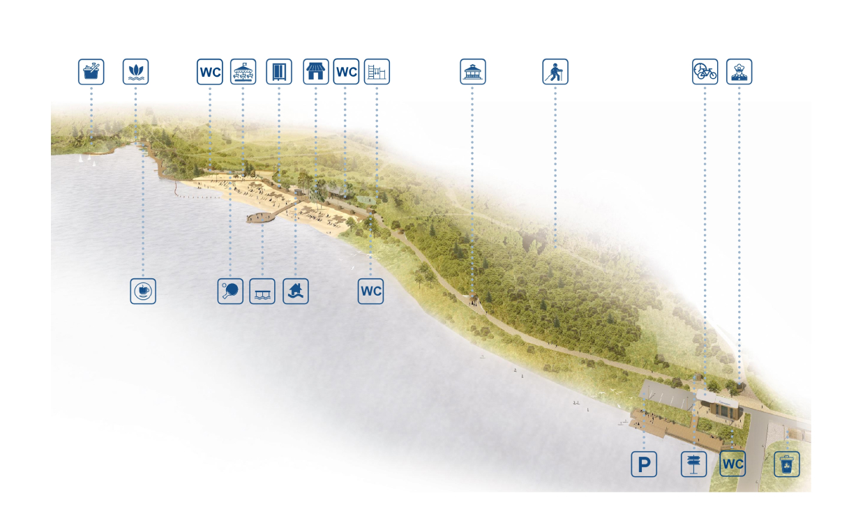 Along the long promenade, the functional areas of the project are concentrated, offering scenarios for year-round recreation on the river: immersion in water, swimming, contemplation of the “Pond with water lilies”, landscape fitness routes, a picturesque path with water perspectives, playgrounds and sports grounds, cafes. Taking into account the wishes of the residents of Krasnogorsk - regular visitors to the space of improvement - the architectural concept is delicately integrated into the natural environment.