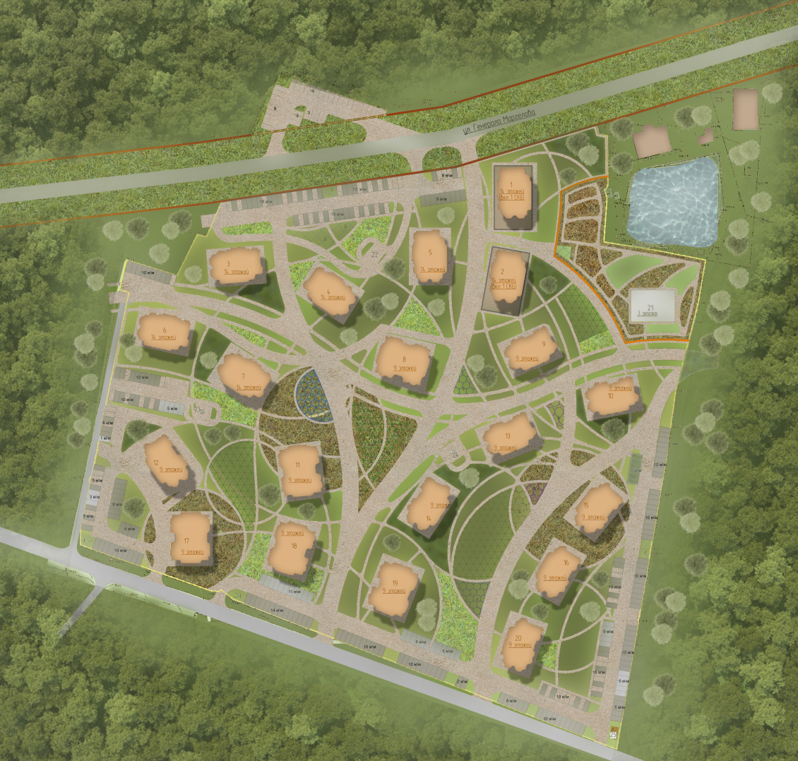 -создание высокомфортной среды для проживания, организация архитектурного пространства жилой застройки единым жилым комплексом;