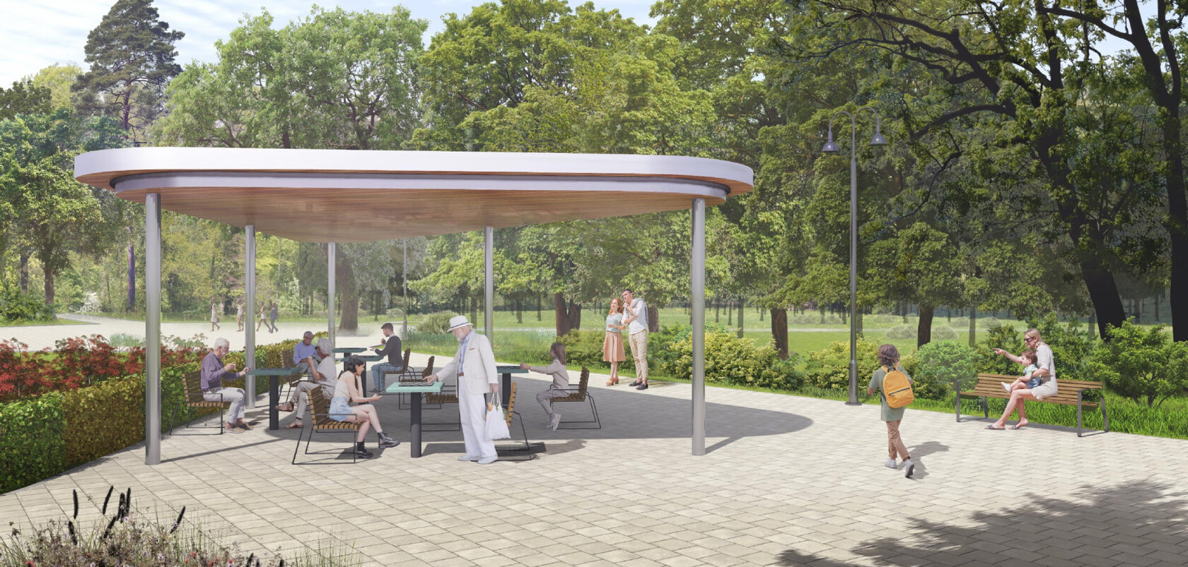 Chess playground with a shady canopy in the Aircraft Builders Park