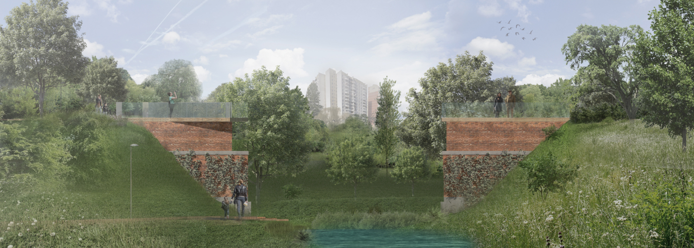 В границах благоустраиваемого участка река Пехорка имеет узкое извилистое русло. Участок проектирования отличается сложным рельефом: склоны вдоль реки имеют активные перепады высот. В его южной части, в непосредственной близости от многоэтажных жилых домов, сформирована частично благоустроенная территория со спокойным рельефом. Основная связь между левым и правым берегом – это пешеходный мост, требующий капитального ремонта. Через реку организованы дюкерные переходы инженерных сетей и коммуникаций. В северной части благоустраиваемой территории сохранились кирпичные опоры железнодорожного моста, построенного купцом Д.И. Миловановым.